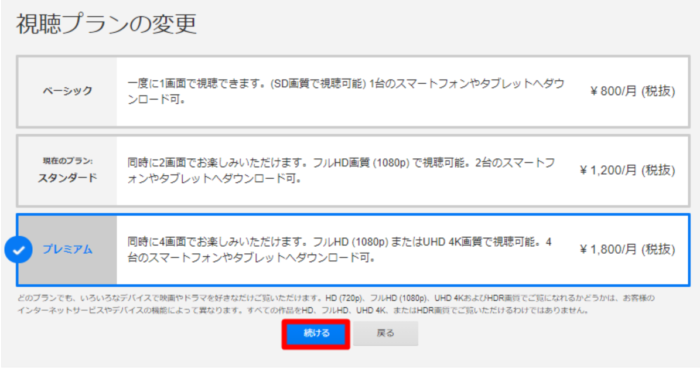 引用元:J:COMサポート Netflixの契約プランを確認・変更する方法 ※表示金額は現在の金額と異なります