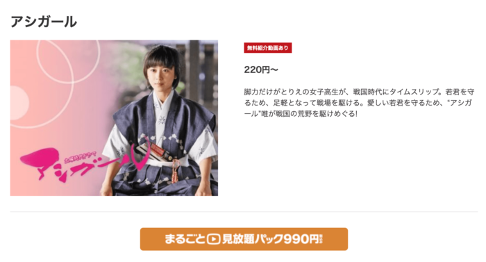 ドラマ『アシガール』を全話視聴できる動画配信サイト