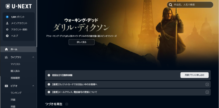無料お試し期間が設けられていない点がマイナスポイントですが、「24」や「ウォーキング・デッド」「クリミナル・マインド」といった海外ドラマも充実している点は魅力的です。