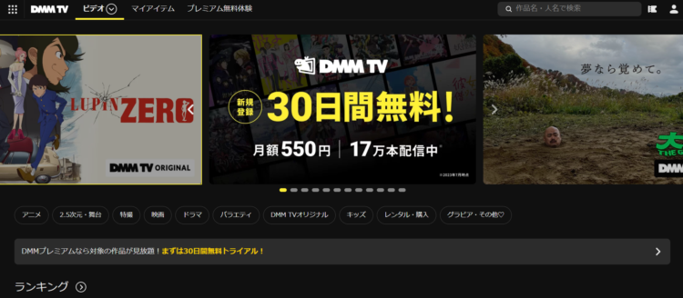 オリジナルドラマや人気作も配信されてるDMM TV