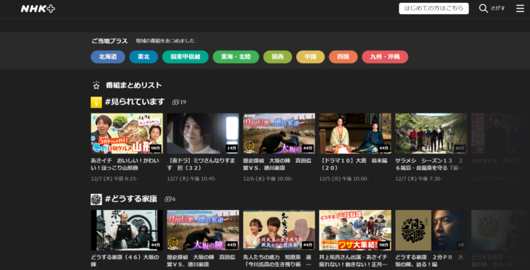 NHK+は、放送中の番組のリアルタイム視聴と見逃し配信をしている動画配信サービスです。
