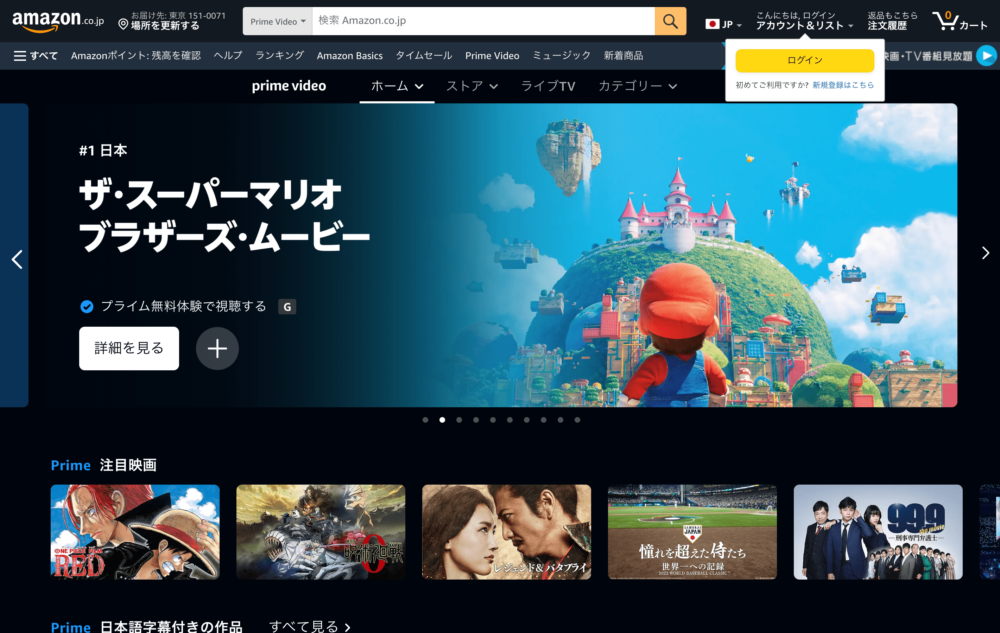 プライム特典が利用できるプライムビデオ