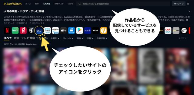 先にJustWatchなどの「配信作品検索サービス」で
