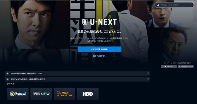 作品数日本最大級「U-NEXT」