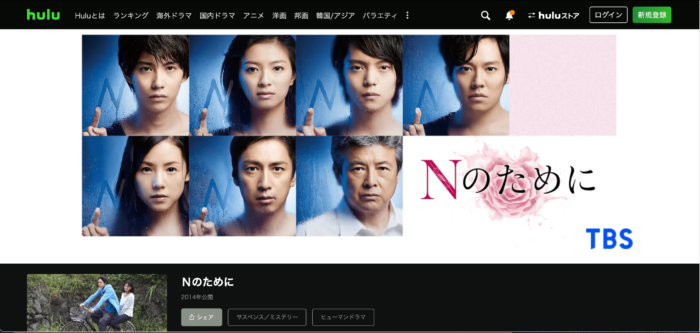 現在、『Nのために』が無料配信されているのは「U-NEXT」と「Hulu」です。