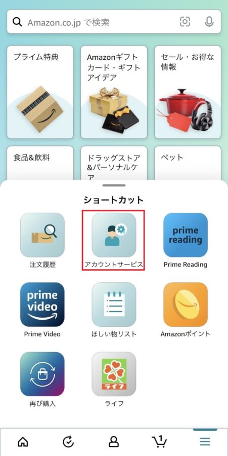 「1-Click設定」は、「アカウントサービス」の「1-Click設定」から設定できます。