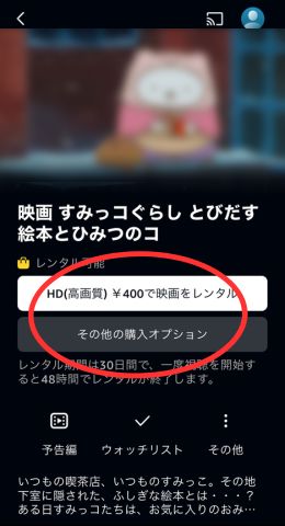 3. レンタル・または購入する(「その他の購入オプション」内に購入、あるいはもっと安価なレンタル料金の選択肢がある)