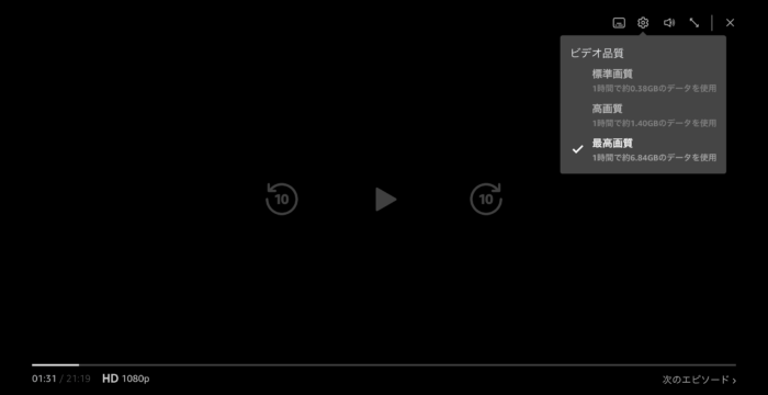 動画品質を最高画質以外を選択すると、重くなりすぎず再生がスムーズになりやすいです。前項の画像のように、再生画面の右上にある歯車マークから変更ができるので、確認してみてください。