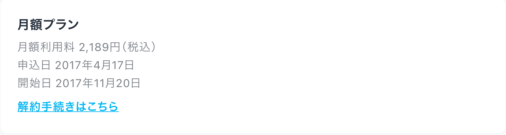 もし、解約手続きが正常に完了していない場合は、次の画像のように「解約手続きはこちら」と表示がされます。